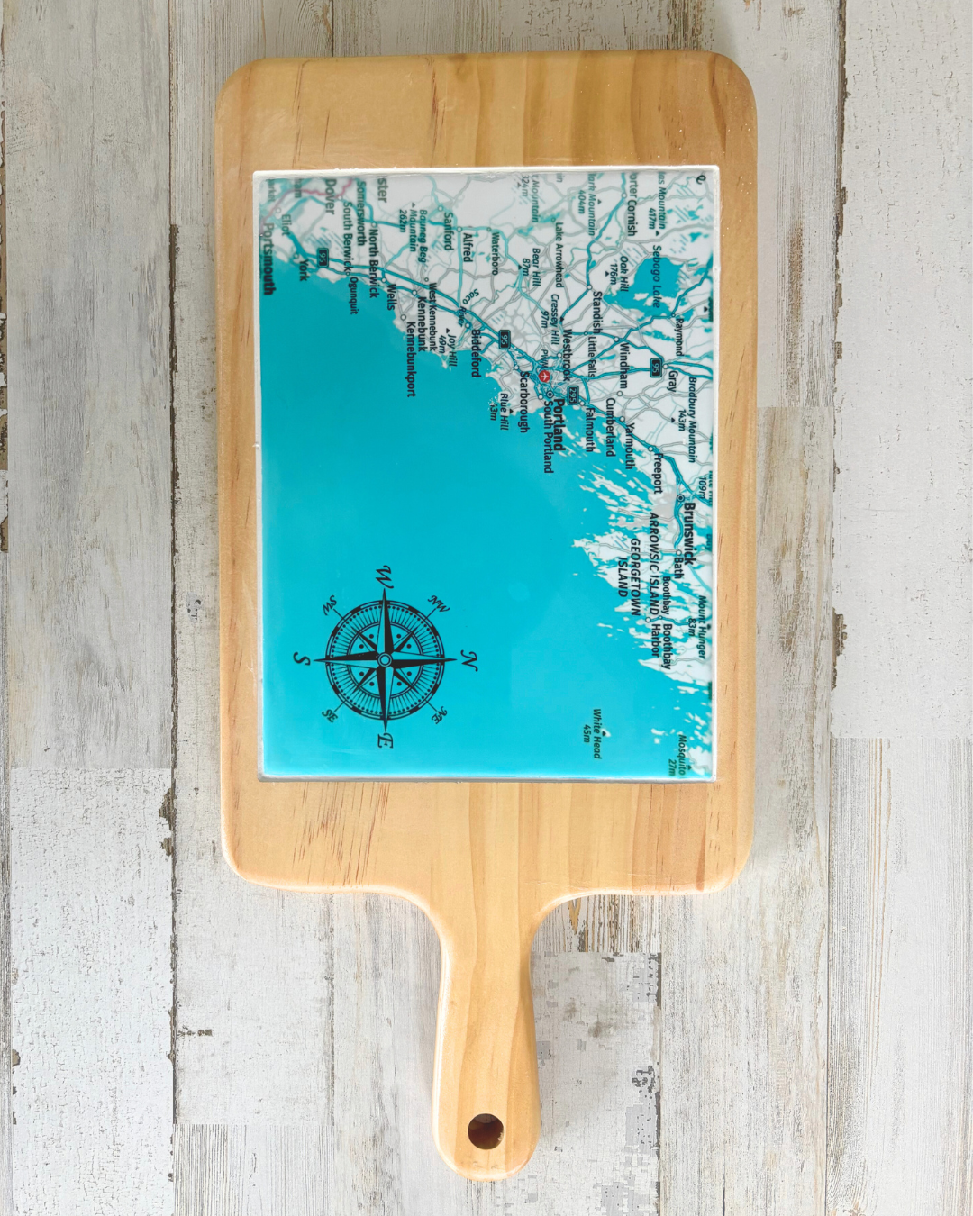 Custom Map Pinewood Cheese Board with Ceramic Tile – 7.1" x 15"