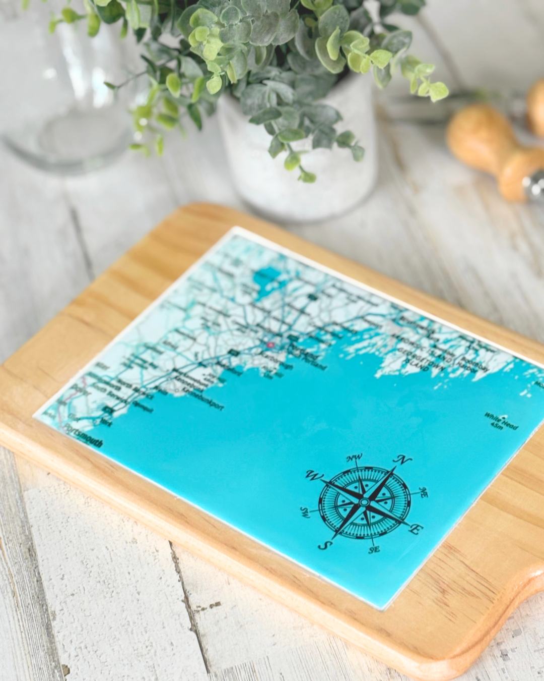 Bring a personal touch to your next wine and cheese night with this beautiful pinewood cheese board, featuring a custom map tile of your choice as the centerpiece. Whether you're showcasing your hometown, favorite vacation spot, or a place close to your heart, this board blends style, sentiment, and functionality all in one.
